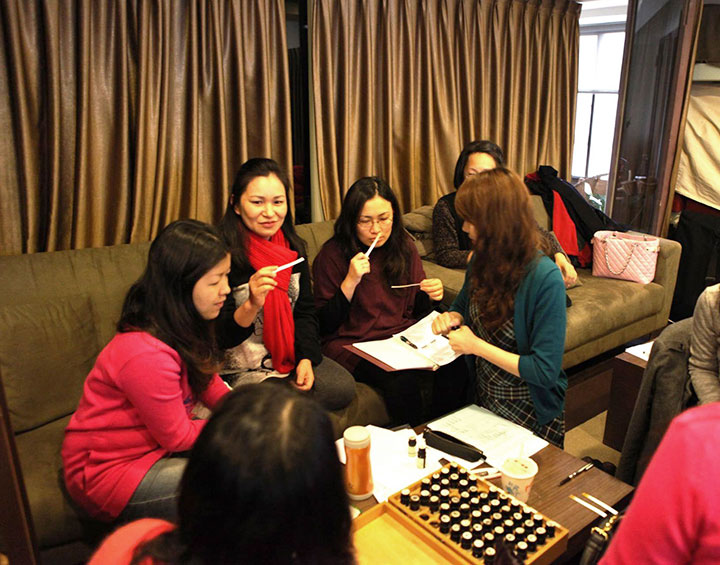 「我認為要當芳療講師,必須喜歡與人接觸。」觀察育歆的言談,確實給人容易親近的感覺,也難怪學員們願意跟她分享生活的點滴。「一開始會沒有自信是正常的,但只要多做功課,將每堂課都當作是最後一堂去做準備,累積了一定的經驗,就會比較有自信去面對學員,但這些都離不開與人互動,所以最基本的,是要喜歡與人接觸。」香氣是很直覺的,面對同樣的香氣,每個人的感覺都不盡相同,「具備感性、正面積極的態度,勇於分享自己的感受,這樣才能與學員間建立起信任感。」如果以真誠的心對待他人,相信對方也會以同樣真誠的心來回饋,而這也是當芳療講師最大的成就。
