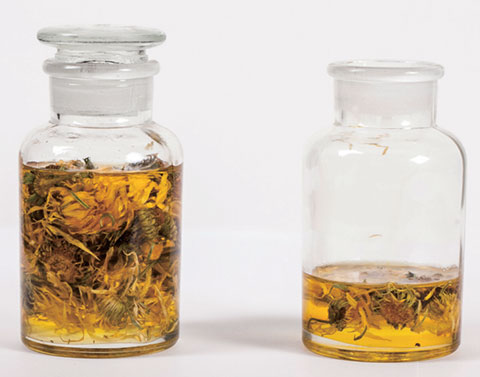 2. 注意比例的調製:1公升的基底油約需要100克的乾燥金盞花瓣,依此類推。