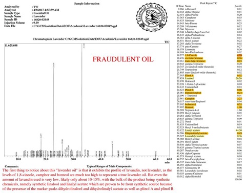 博士繼續提到美國“Art Naturals”所出的“純精油”也是 非 天 然 的 假 精 油!