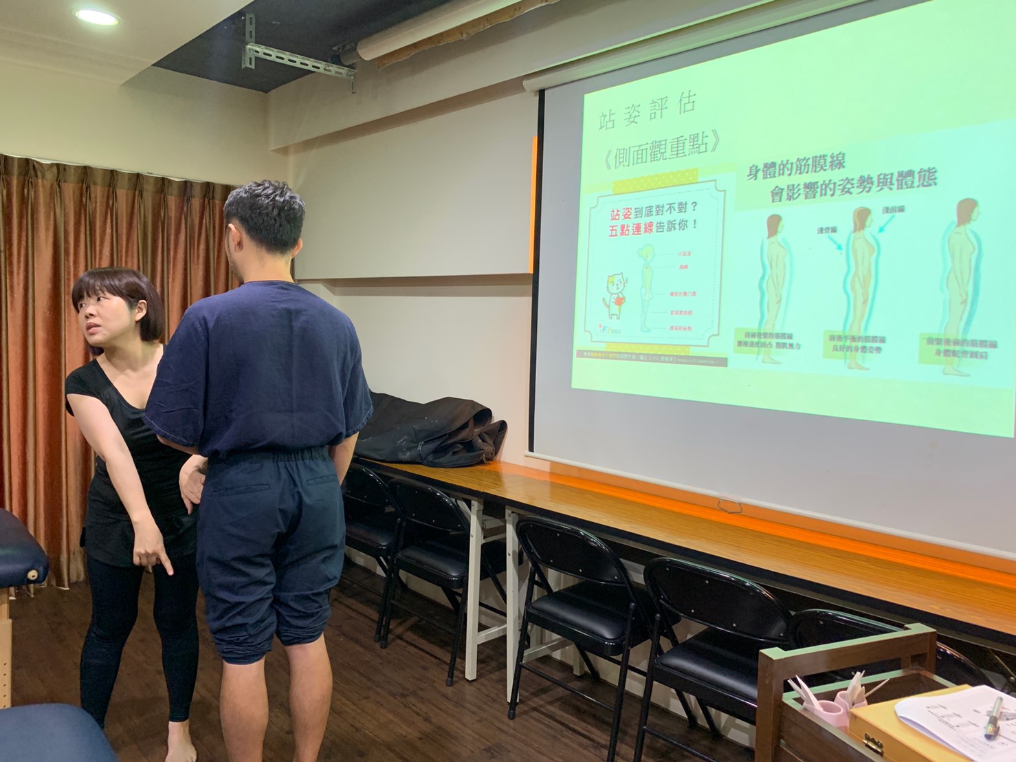 這次肌筋膜講座,有個小插曲,就是報名之前都會跟女學員們告知要穿運動胸罩,結果有位女學員穿一般內衣前來,但她落落大方地解釋,她是中醫師,從醫學院訓練出來的,人體學習過程是再正常也不過了!