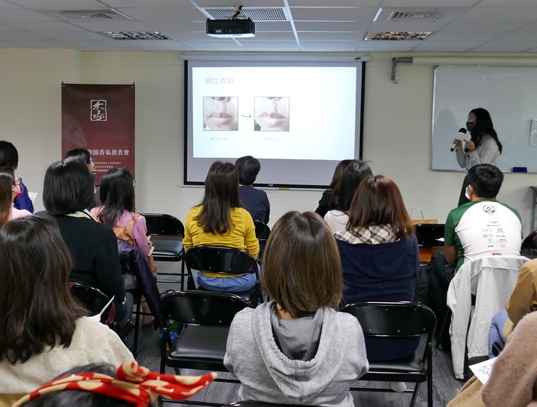 苡卉是高階71期的學員,在香氣發表會中發表唇皰疹的個案。