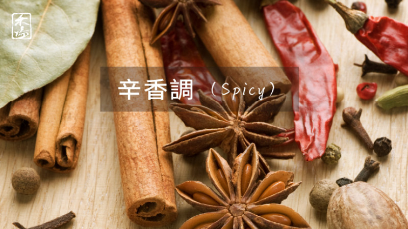 辛香調擁有刺激且充滿能量的氣味,來源於香料如肉桂、丁香、生薑、黑胡椒等。這類香氣常給人溫暖、熱情的感受。芳療應用上具有促進血液循環、暖宮暖身的效果,適合冬季配方,亦常用於調配溫感按摩油。