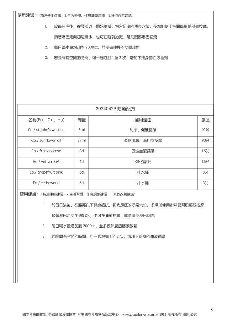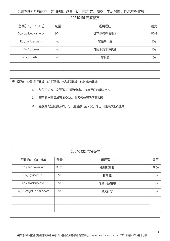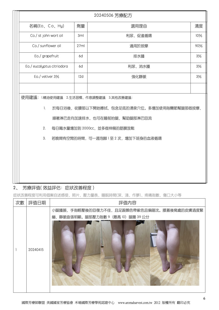 在幫個案使用完每一次精油後,現場看到的腿型、顏色、浮腫度都有大幅的提升,每一次的諮詢都得到很好的回饋與稱讚,