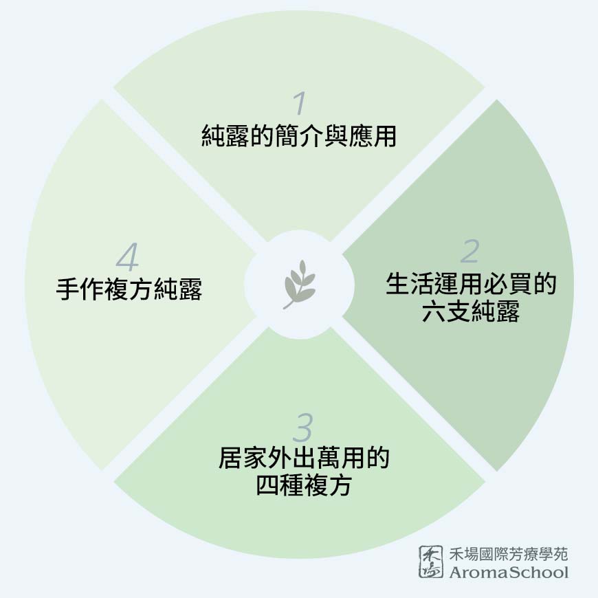 你知道嗎?純露也是芳香療法的一種唷!這堂課的主題是「新手必備日常純露」, 講師以幽默風氣的方式,引領學員認識並學習將如何將純露運用在生活上。為初學者量身訂做的課程,學習如何運用這10支精油為自己與家人帶來肌膚及身體的保健。為自己打造一個健康快樂的生活。