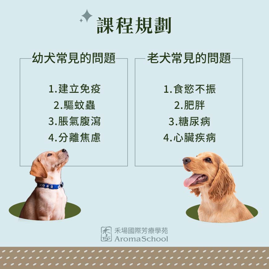 • 特色一:認識老幼犬的特性,學習在正確的時間使用正確的精油